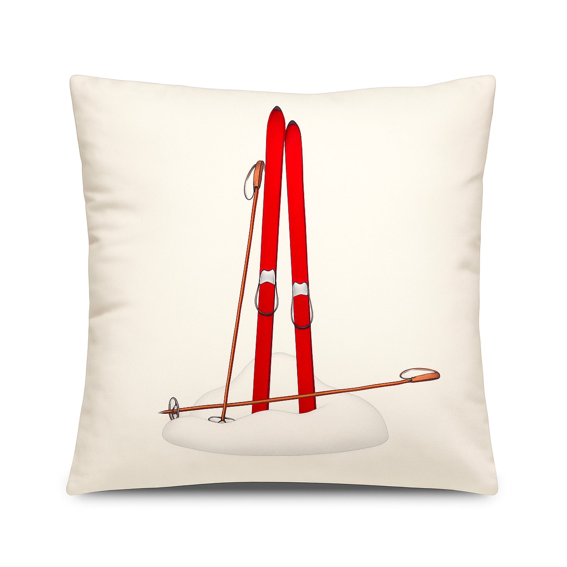 Apportez une touche alpine élégante à votre intérieur avec ce coussin décoratif orné d’un motif de skis rouges posés dans la neige. Parfait pour insuffler un esprit chalet et cocooning à votre salon, chambre ou coin lecture.