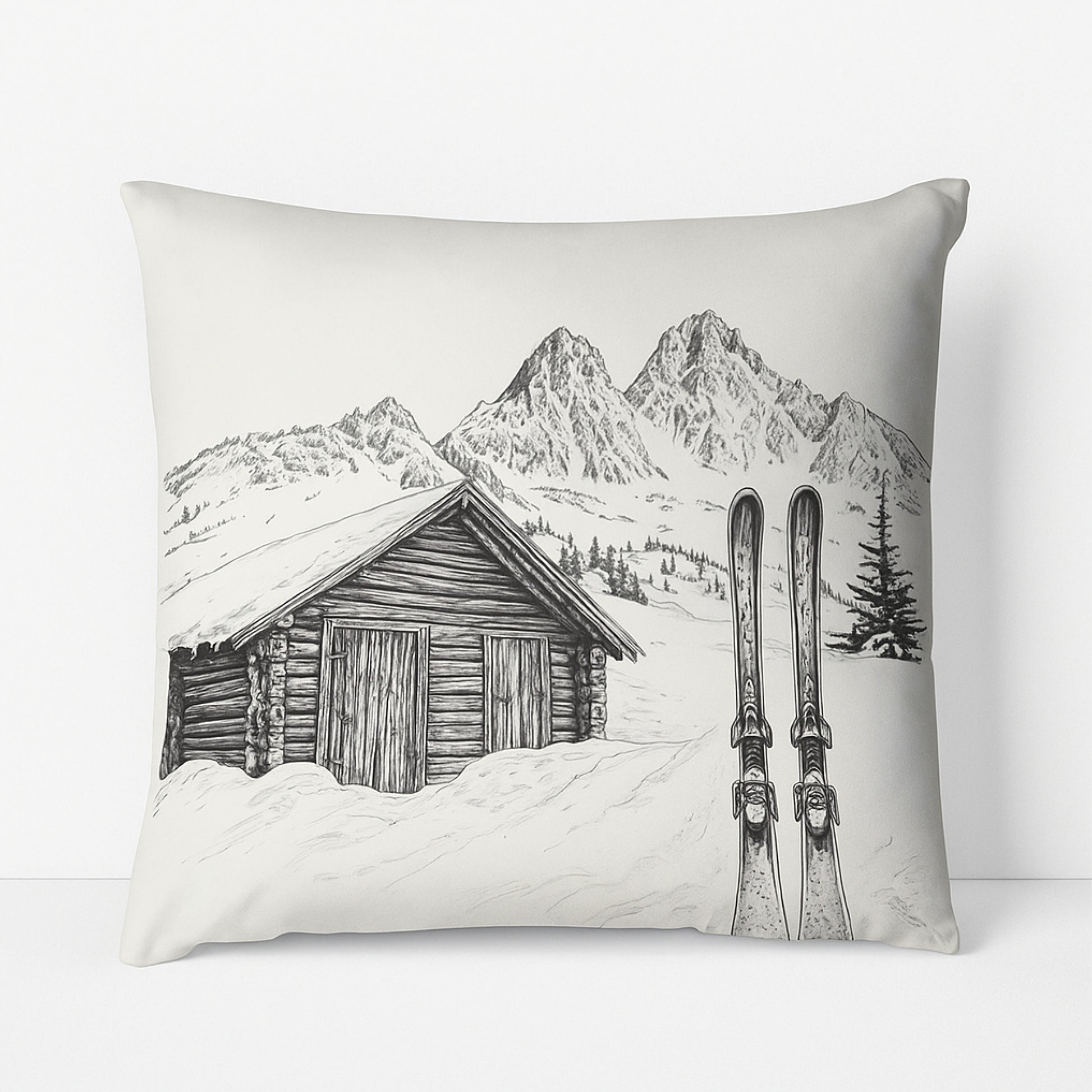 Apportez une touche cosy et montagnarde à votre intérieur avec ce coussin chic noir et blanc, illustré d’un charmant chalet de ski au pied des montagnes enneigées. Son design raffiné, mêlant paysage hivernal et skis, crée instantanément une ambiance chaleureuse, idéale pour un salon cocooning, une chambre cosy ou un coin lecture près de la cheminée.